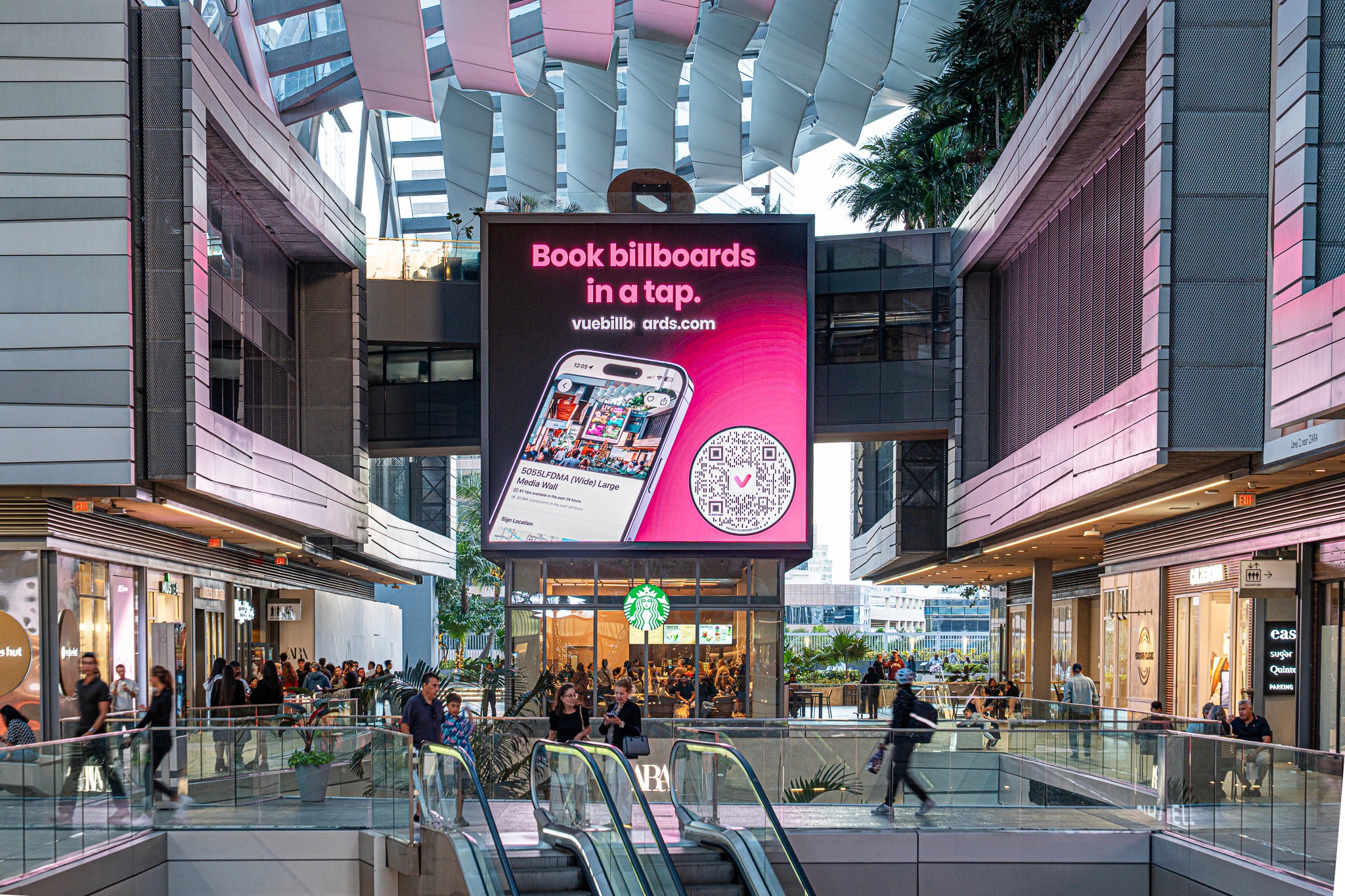 Through Vue Billboards, advertisers can activate Brickell City Centre across a full digital footprint: five large-format media walls and twenty-four kiosks distributed throughout the property.